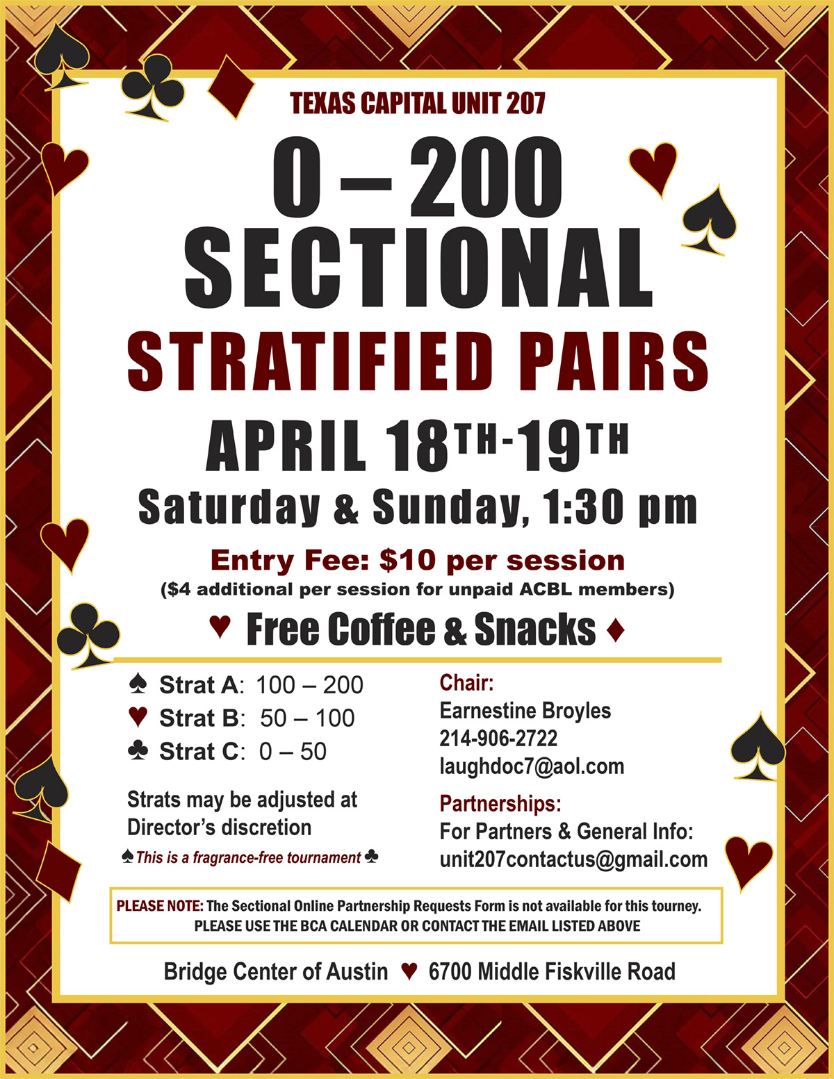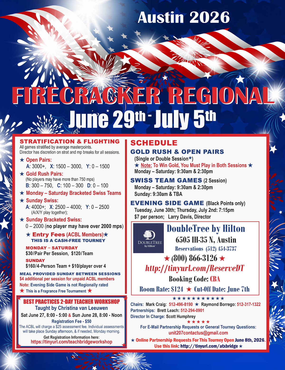 Kalyan Venkat was 3rd overall in the Flight A NAP with a non-Unit 207 partner at the St. Louis NABC. Steve and Andrew Chen were 5th overall Flight A.